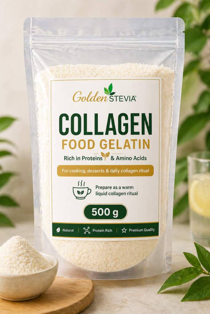 Collagen, also known as gelatin, is an essential protein for maintaining the flexibility and health of skin, hair, nails, and joints. When ingested, collagen breaks down into amino acids, which can be redistributed to support various bodily needs or recombine into collagen.